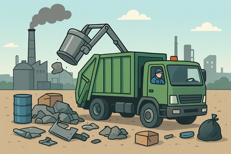 街を見渡すと、工業地帯などには、多数の工場が集まっています。そして、そういった場所では、毎日毎日、産業廃棄物が生み出されています。この産業廃棄物、安易に、運んだり、廃棄したりできません。国の法律によって、廃棄物を運搬する業者、廃棄物を処理する業者などに許可を与えることで、ごみ問題が生じないよう対策がなされております。仮にこれらの許可なしで、産業廃棄物を運搬、廃棄した場合は、違法行為となってしまいます。くれぐれもお気をつけ下さい。